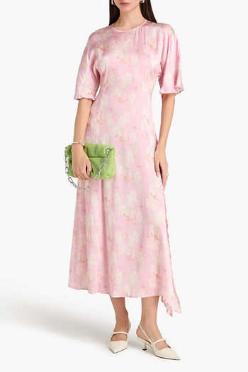 Floral-print crinkled-satin midi dress