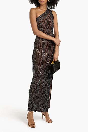 Sequined crochet-knit maxi dress