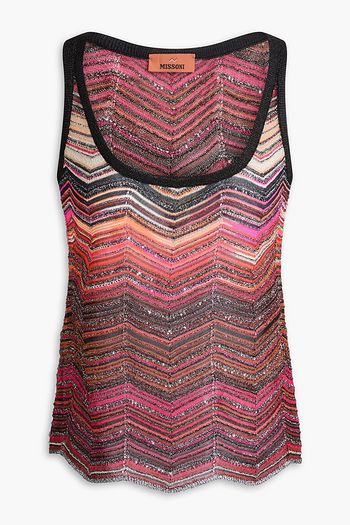Sequin-embellished metallic striped ribbed-knit tank