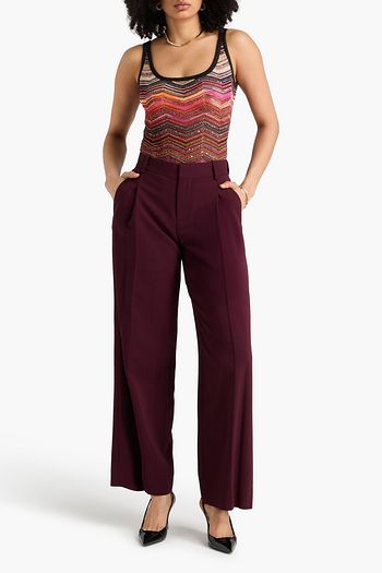 Striped crochet-knit cotton-blend tank
