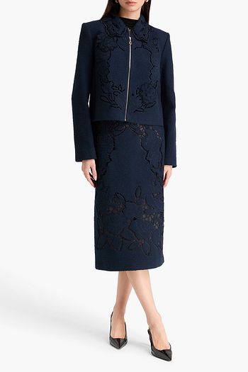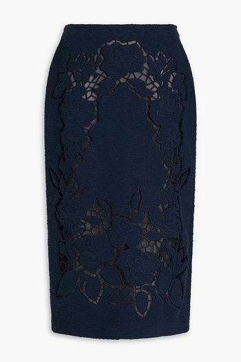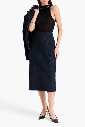 Embellished laser-cut wool-blend midi dress