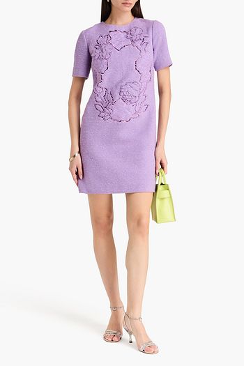 Embroidered cotton-blend bouclé mini dress