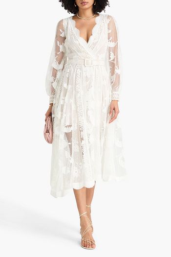 Belted fil coupé-organza midi dress