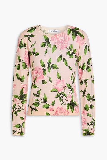 Floral-print wool sweater