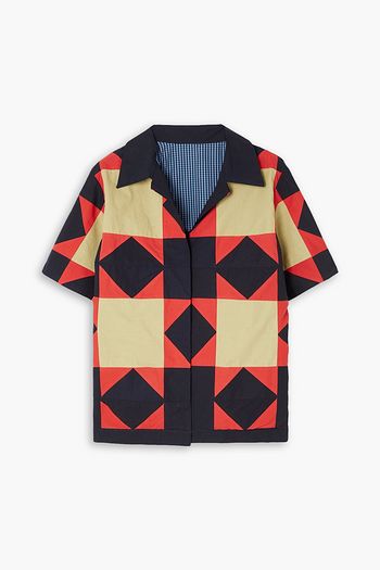 Cropped printed cotton-poplin blouse