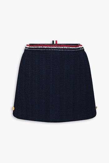 Striped cotton-blend tweed mini skirt