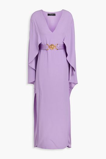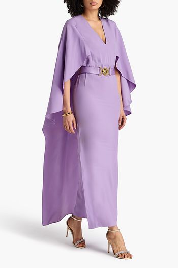 Belted cape-effect crepe maxi dress