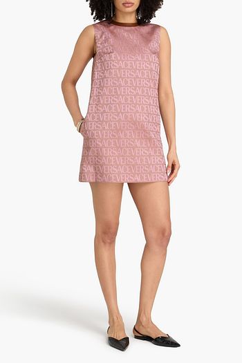 Pussy-bow floral-print silk crepe de chine mini shirt dress
