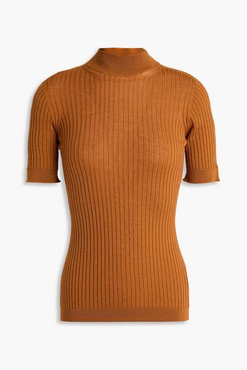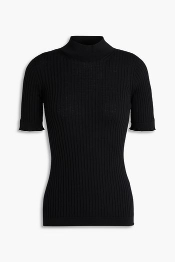 Ribbed wool mock-neck sweater