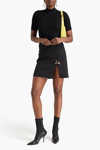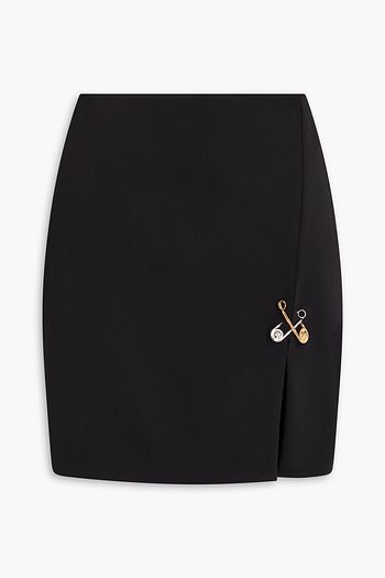 Embellished grain de poudre wool-blend mini skirt