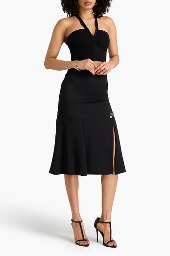 Cutout stretch-jersey midi skirt