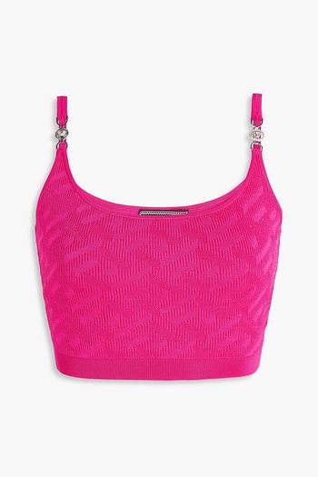 Cropped embellished jacquard-knit top