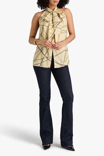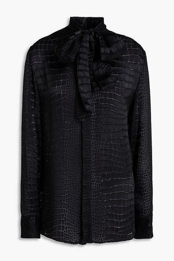 Pussy-bow devoré-satin shirt