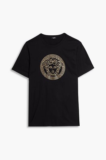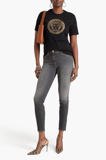 Metallic printed cotton-jersey T-shirt