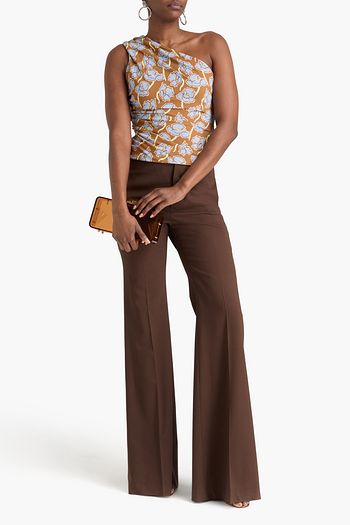 One-shoulder draped floral-print jersey top