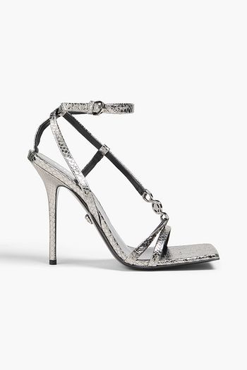 Embellished metallic snake-effect leather sandals