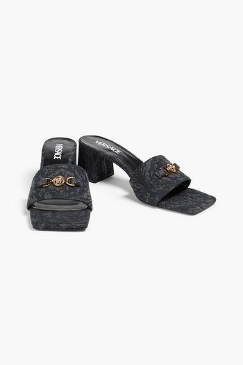Medusa embellished floral-jacquard mules