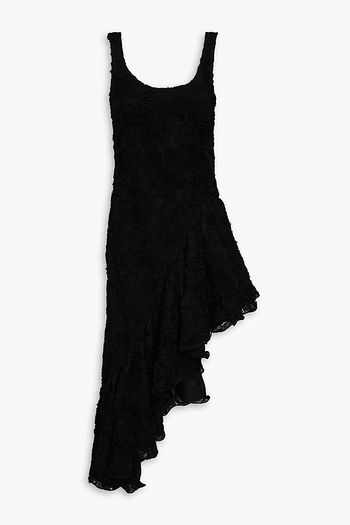 Asymmetric guipure lace-trimmed taffeta maxi dress