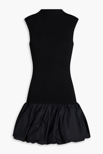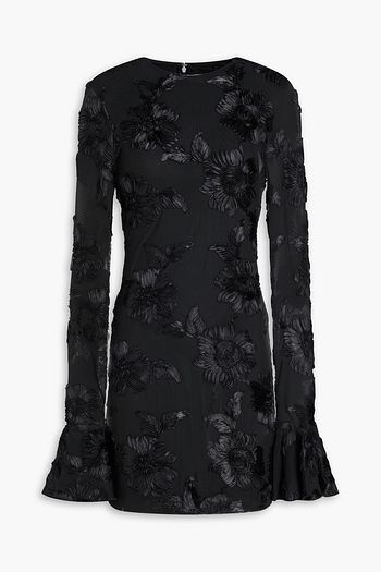 Floral-appliquéd jersey and wool-blend crepe mini dress