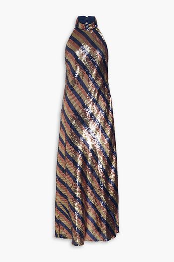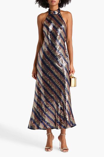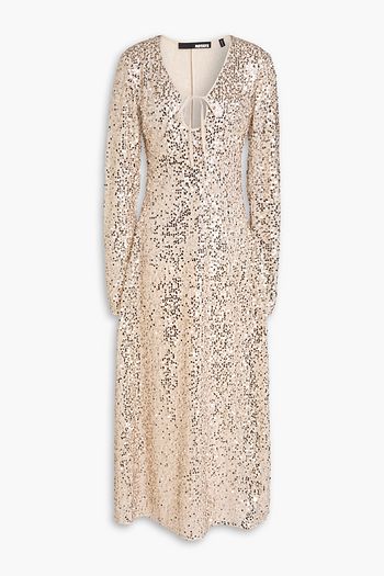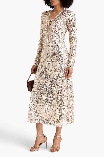 Floral-appliquéd wool, silk and cashmere-blend midi dress