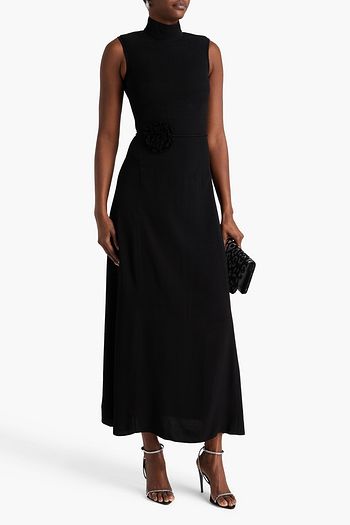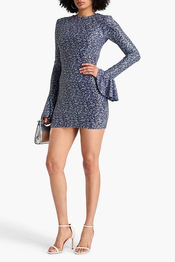 Strapless floral-appliquéd cotton-blend poplin mini dress