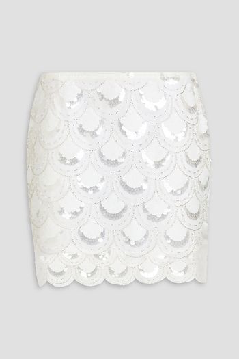 Crystal-embellished tulle-trimmed crepe mini skirt