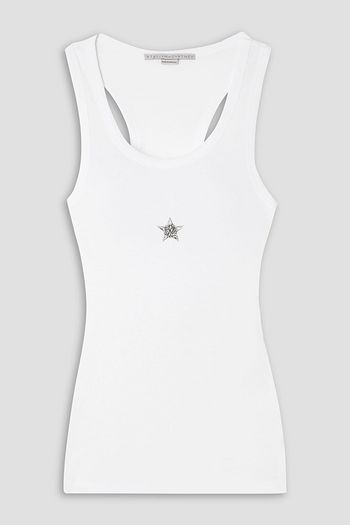 Embellished crochet-trimmed Lyocell and cotton-blend tank