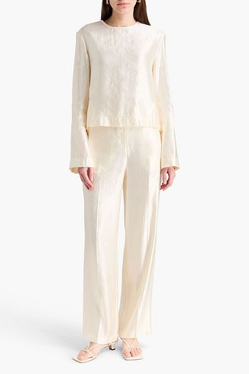 Satin-trimmed wool, mohair and silk-blend flared pants