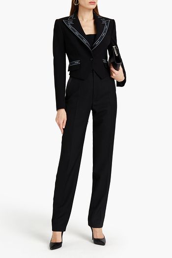 Cropped embellished linen-blend jacket