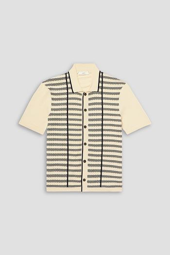 Striped textured-knit cotton polo shirt