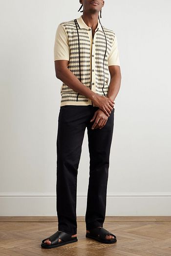 Striped waffle-knit alpaca-blend polo shirt