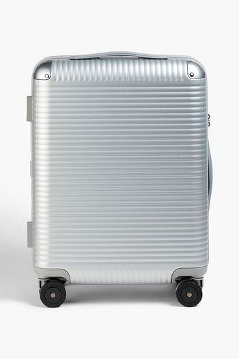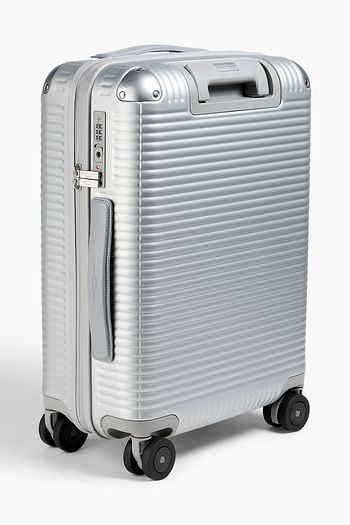 Spinner 55cm leather-trimmed metallic polycarbonate suitcase