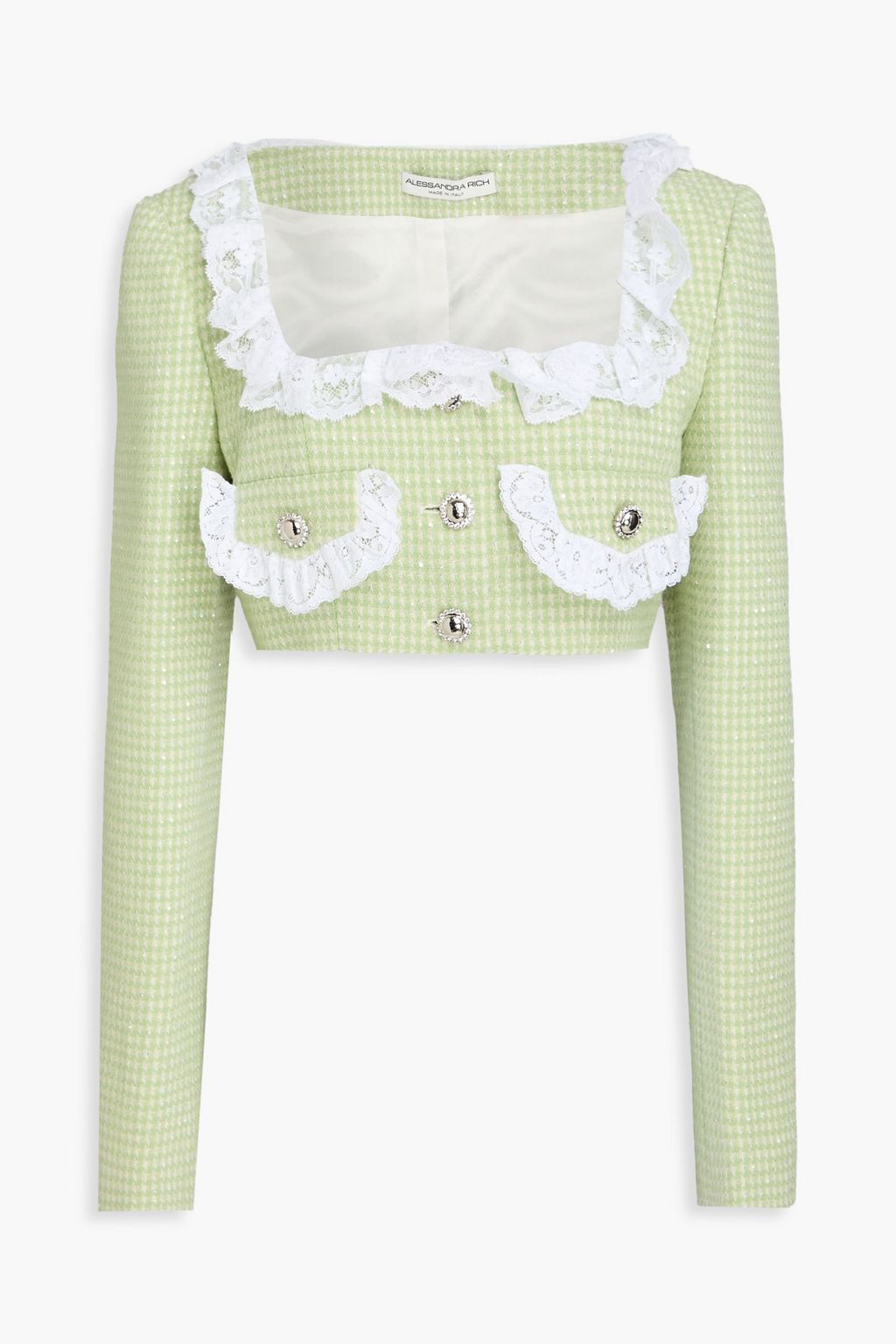ALESSANDRA RICH Cropped embellished houndstooth wool-blend tweed jacket