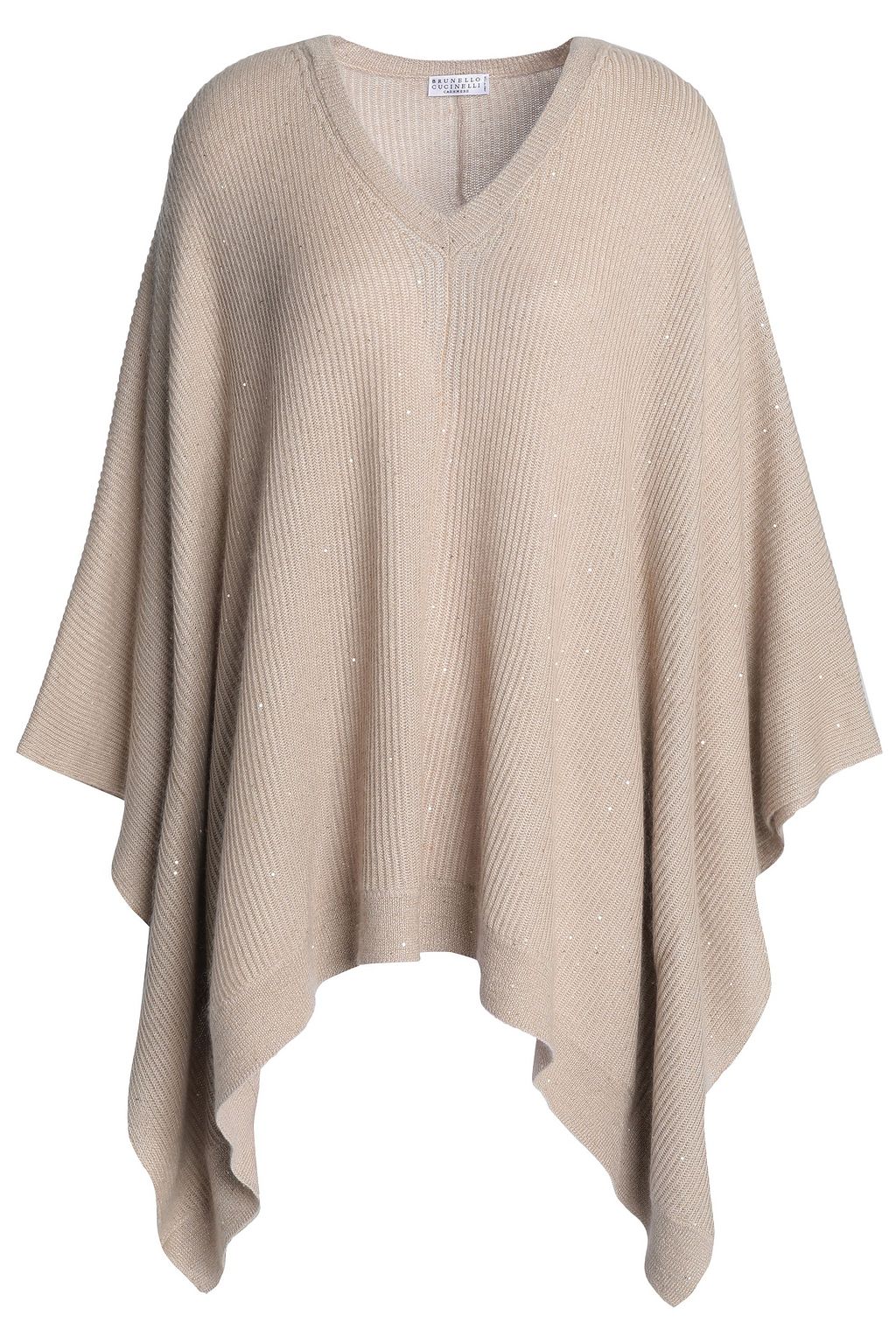 BRUNELLO CUCINELLI Sequin-embellished ribbed-knit poncho
