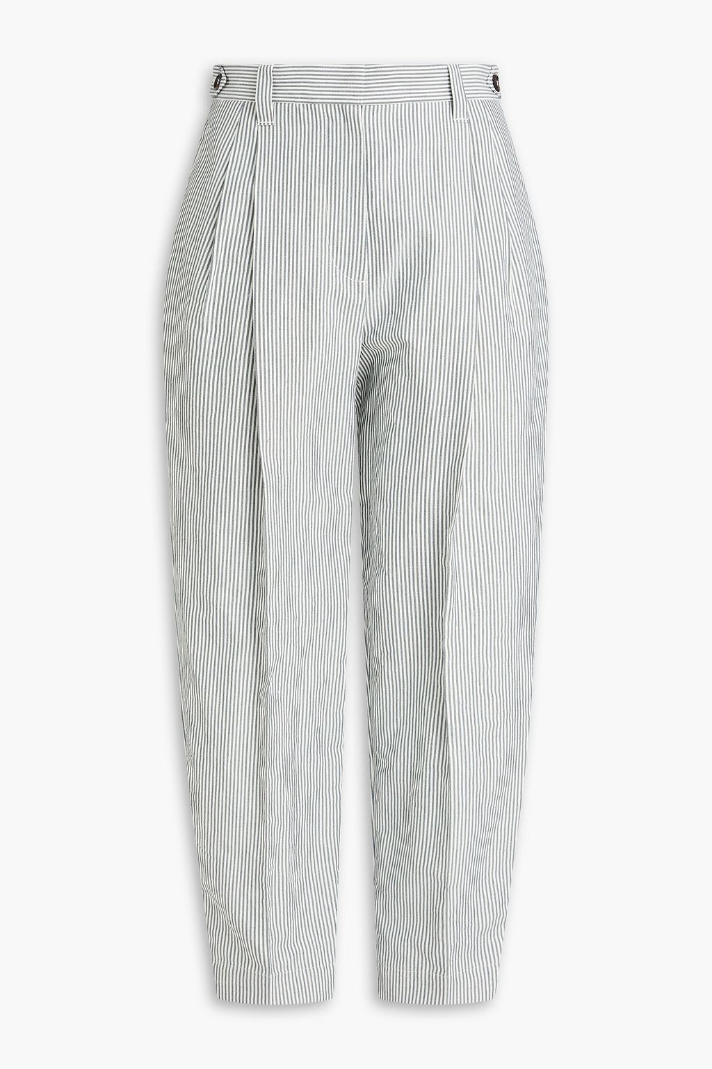 BRUNELLO CUCINELLI Striped cotton and linen-blend tapered pants