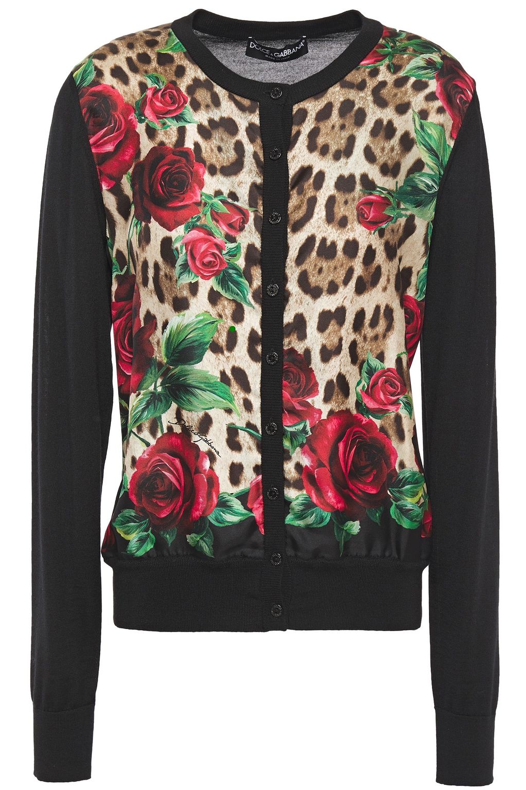 DOLCE&GABBANA Printed twill-paneled cashmere and silk-blend cardigan