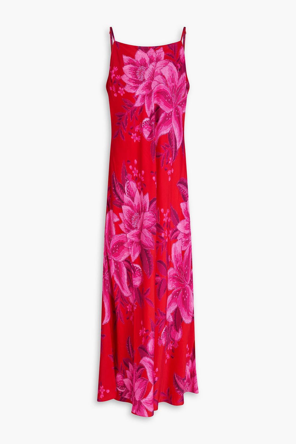 FARM RIO Floral-print satin maxi slip dress