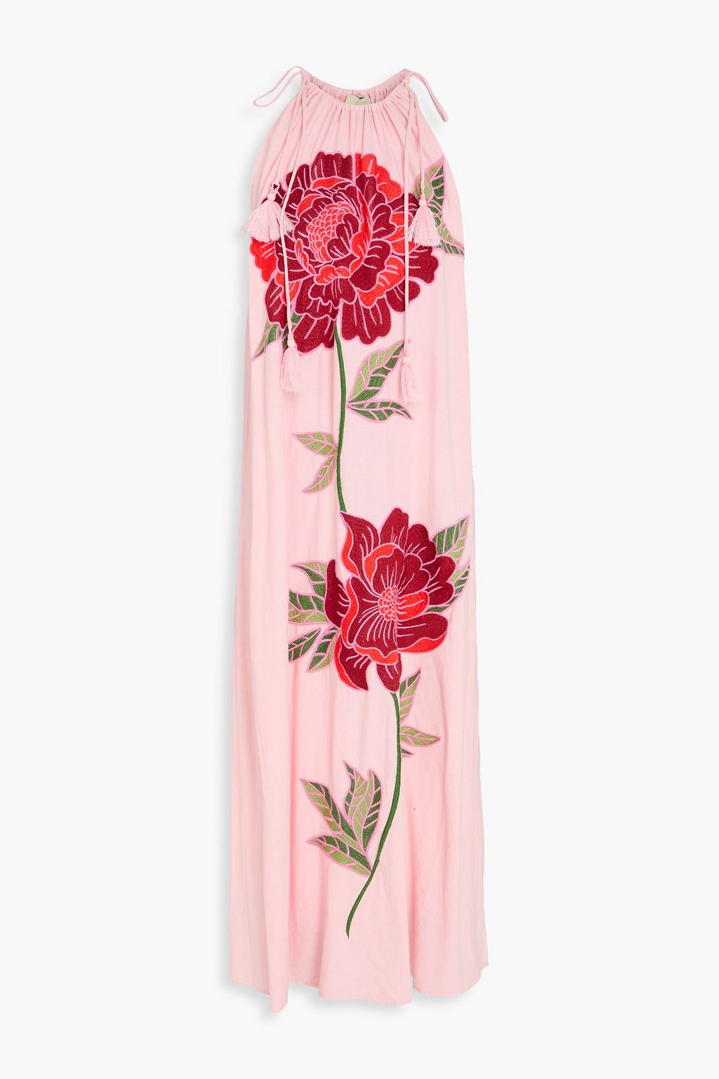 FARM RIO Embroidered linen-blend midi dress
