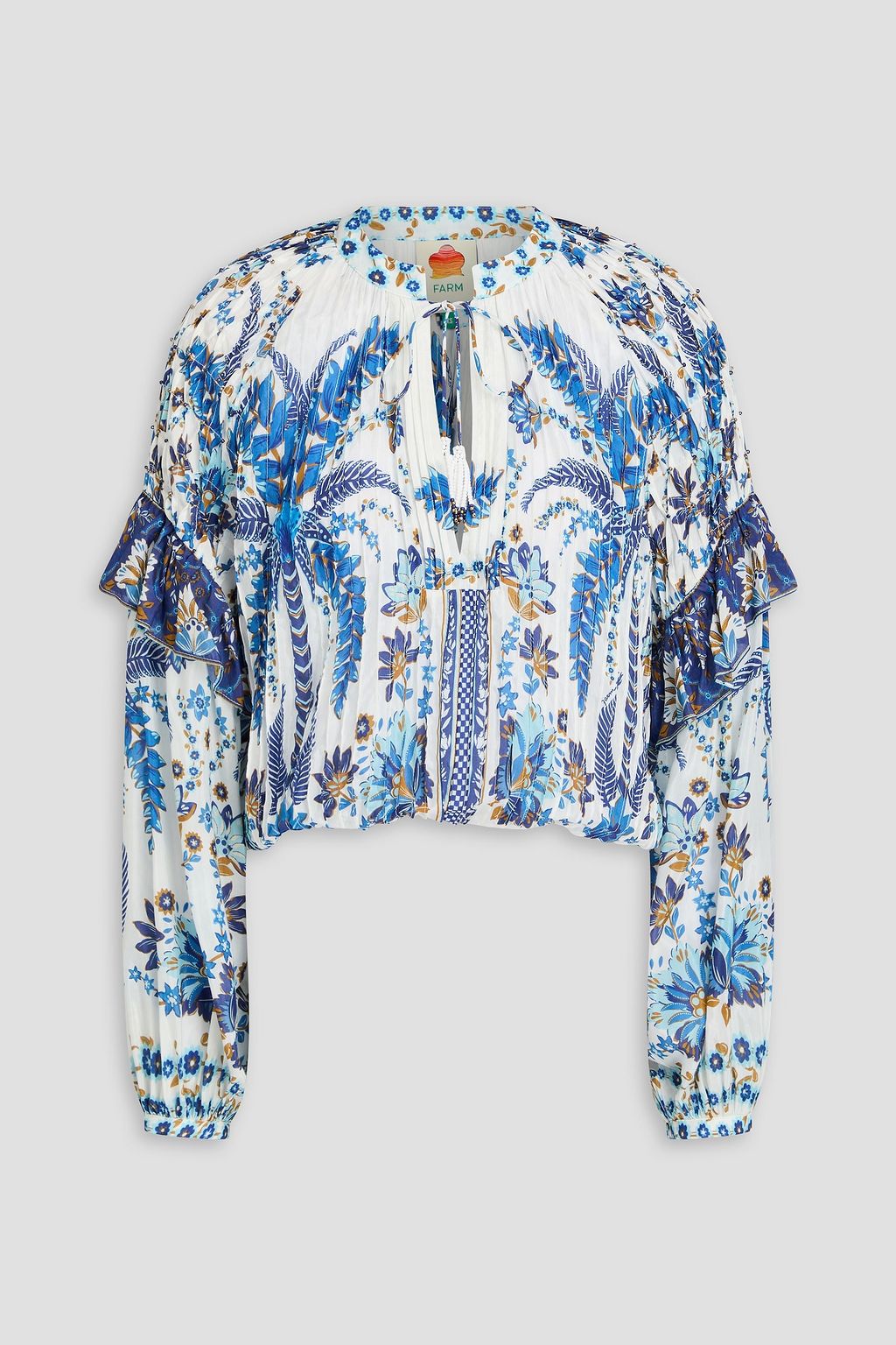 FARM RIO Embellished floral-print cotton-blend blouse