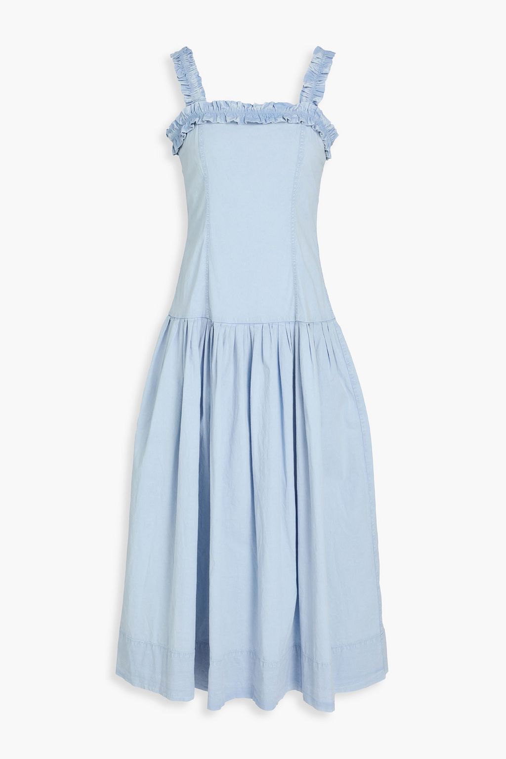 GANNI Pleated stretch-cotton midi dress