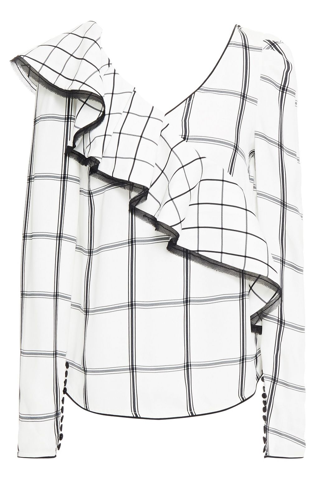 SELF-PORTRAIT Ruffled checked jacquard top