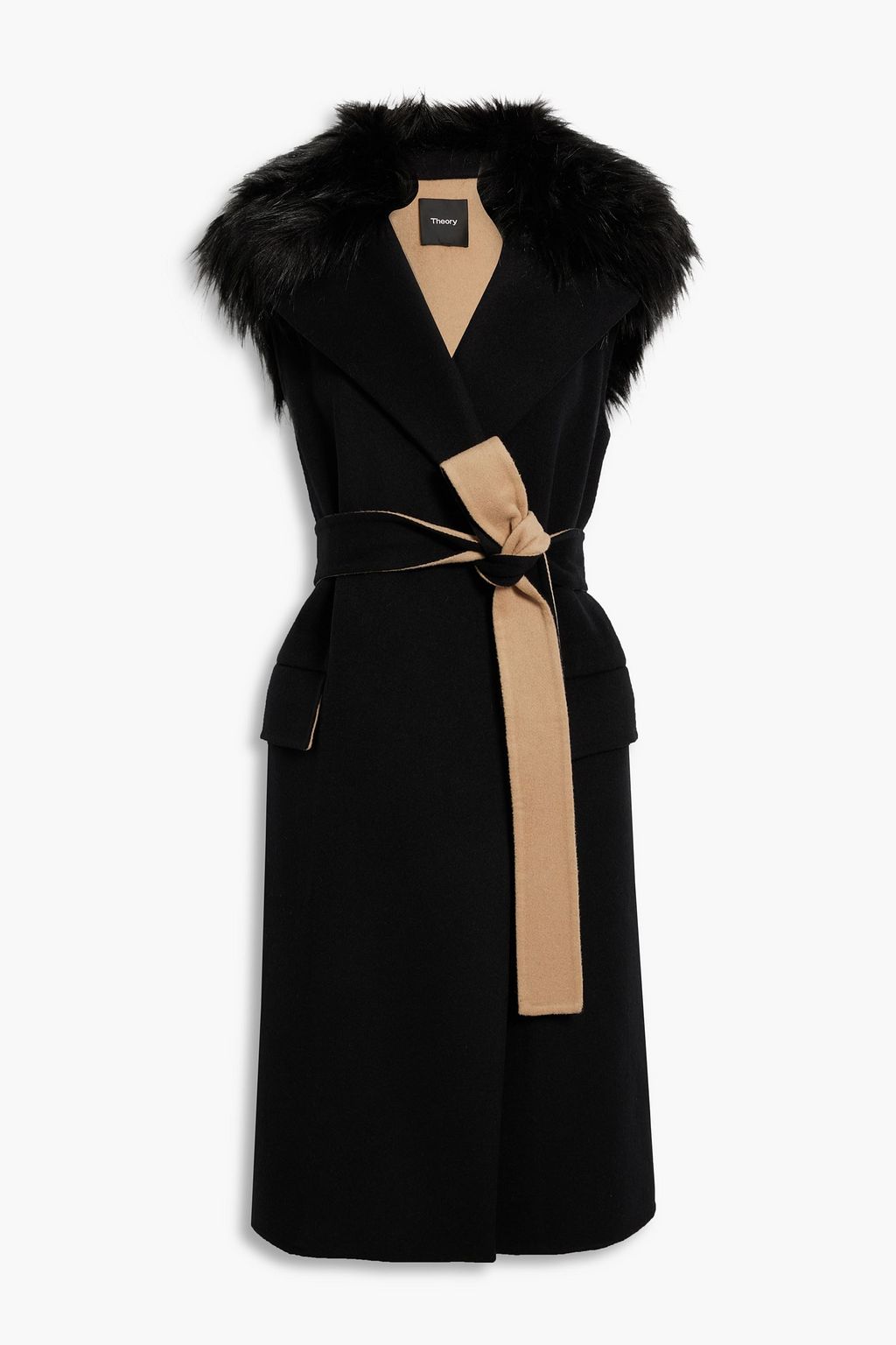 THEORY Faux fur-trimmed wool and cashmere-blend felt vest