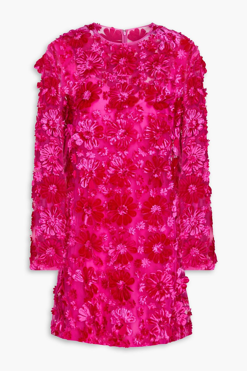 VALENTINO GARAVANI Floral-appliquéd tulle mini dress
