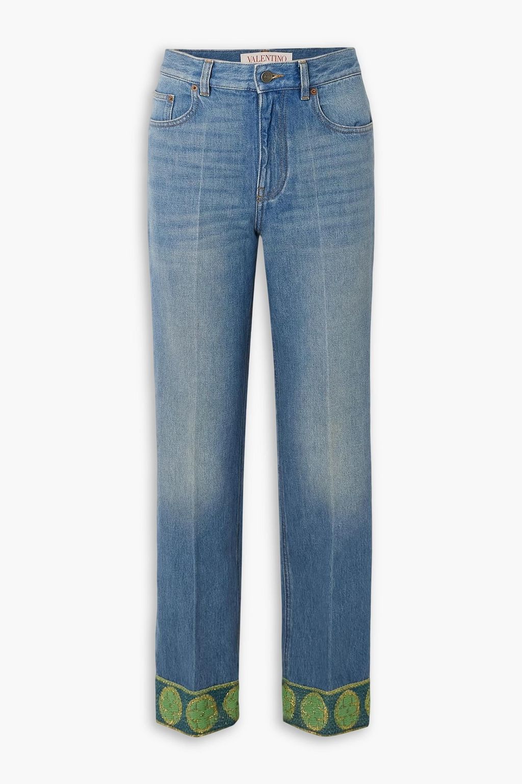 VALENTINO GARAVANI Metallic jacquard-trimmed straight-leg jeans