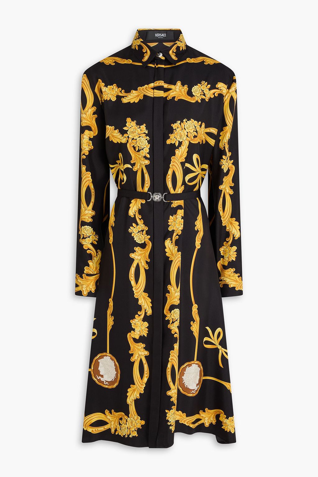 VERSACE Belted printed silk-twill midi shirt dress