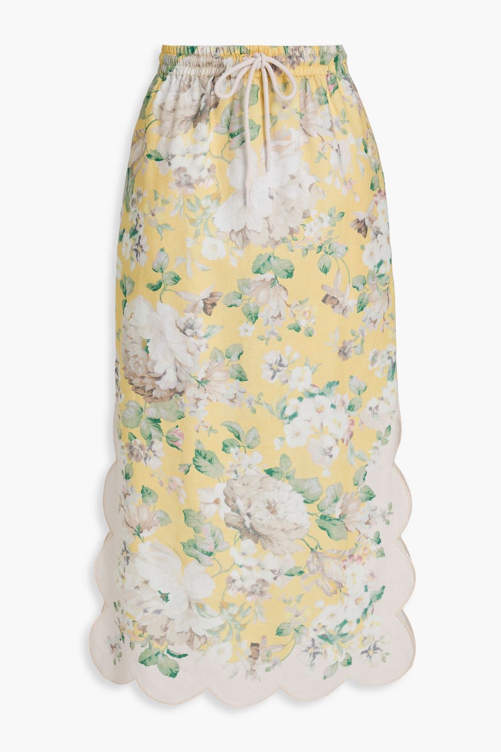 ZIMMERMANN Scalloped floral-print linen midi skirt