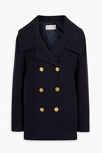 Off-the-shoulder wool and silk-blend crepe wide-leg jumpsuit