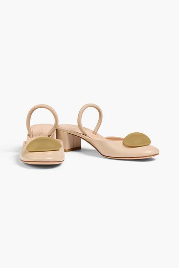 Bead-embellished leather slingback pumps