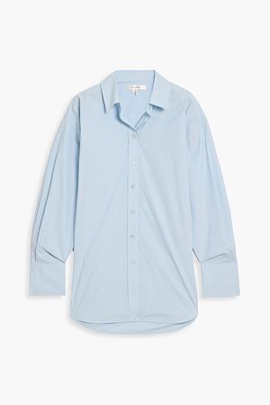 It was the sublime Audrey Hepburn in an oversized men’s tuxedo shirt and nothing else padding around her flat the morning after a big night in the film Breakfast at Tiffany’s that sealed the oversized boyfriend shirt as a true sartorial icon for me. White, crisp cotton, large cuffs, collarless with a bib and black, contrast buttons — total sartorial perfection. It was a nonchalant look, a statement of luck and lust and upending tradition. “Oh, this shirt? I just found it on the floor after last night’s adventures!” It symbolized breaking the rules of masculine/feminine wear in the early 1960s and forever since that moment I saw her lover’s shirt’s starring role in that scene, I started hunting down other large, crisp cotton shirts to fill my wardrobe and take center stage.