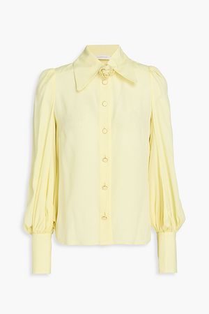 I do have a collection myself of quite traditional blue-pinstriped with button-down collared shirts in varying shades and stripes (it IS possible to be addicted to striped shirting!), but I’ll style them differently. Sometimes layered on top of a horizontal marinière tee, tucked into a pair of khaki trousers or buttoned all the way to the top except the last two bottom buttons, cinched in at the waist over a long-pleated skirt to give more volume from the top. I also have a myriad of baby pink and lemon sorbet shirts — colors not usually associated with the boyfriend shirt, that I’ll style for day or night. The artist Georgia O’Keefe always inspires me with her masterful balance of the masculine and feminine way of dressing, and I love the way she would roll up her sleeves just so or play with the proportion and cut of a collar and color.